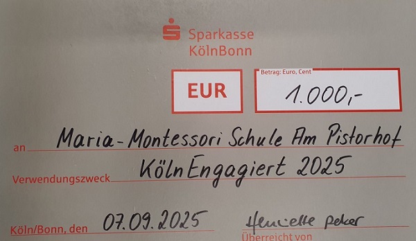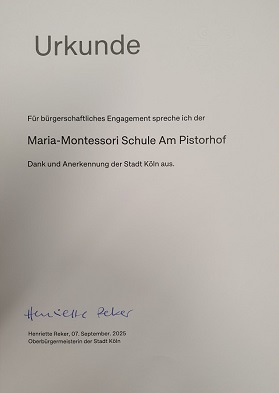 Am Sonntag, den 07.09.2025, war es soweit: Bei einer feierlichen Preisverleihung in der Piazetta des Kölner Rathauses wurde unsere Maria Montessori Schule mit dem Ehrenamtspreis 2025 ausgezeichnet.