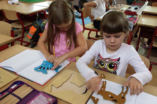 Das Lernen spricht alle Kanäle an – auditiv, visuell, haptisch, sozial. Die Kinder arbeiten in wechselnden Sozialformen, vorwiegend mit einem Partner oder in kleinen Gruppen, ziehen sich aber auch ganz bewusst zurück, um alleine zu arbeiten. Die Arbeit in wechselnden Sozialformen bietet die Möglichkeit, die Kommunikationsfähigkeit und die Teamfähigkeit zu üben und fortzuentwickeln. Schlüsselkompetenzen: Fachkompetenz – Methodenkompetenz – Sozialkompetenz bilden sich heraus und haben Zeit und Raum zum Wachsen.