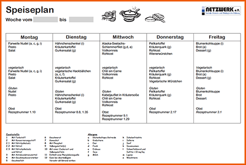 Vegetarisch essende Kinder erhalten eine rein vegetarische Kost. Diese ist im Speiseplan gesondert ausgewiesen. Für Kinder mit Allergien und anderen Lebensmittelunverträglichkeiten können besondere Absprachen zwischen Eltern und Küchenleitung getroffen werden. In dem Fall muss ein Attest vom Arzt vorliegern. Netzwerk e.V. legt besonderen Wert auf eine gesunde, ausgewogene Ernährung aus hauptsächlich saisongerechten und regionalen Produkten mit einem steigenden Anteil an Lebensmitteln aus ökologisch-kontrolliertem Anbau.