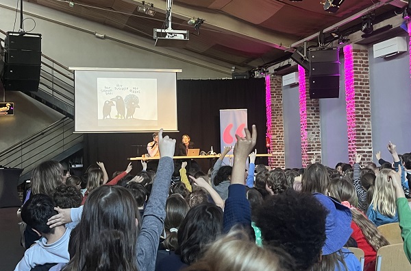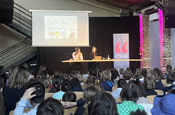 Wir waren am 20.03.2025 bei der lit.Cologne. Bei der lit.COLOGNE halten verschiedene Autoren eine Lesung. An diesem Tag haben Nadia Budde und Arne Rautenberg ihre Bilderbücher vorgestellt. Zum Beispiel wurde das Bilderbuch „Die Band, die keiner kennt“ und weitere Gedichte aus dem Buch „kuddelmuddelremmidemmi schnickschnack“ vorgetragen. Gemeinsam haben wir weitere Reime gesucht. Am Ende durften wir noch Fragen an die Autoren stellen.