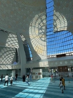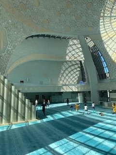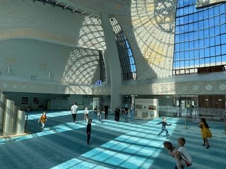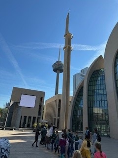 Unsere Klasse hat am 20.Mai einen Ausflug in die Zentralmoschee gemacht. Als erstes waren wir draußen und haben ein paar Fragen beantwortet, zum Beispiel wie hoch die Türme direkt neben der Moschee sind. Es stellte sich dann raus, dass die Türme 55m hoch sind. Sie durften nämlich nicht höher als der Turm der Kirche nebenan sein. Dann sind wir endlich rein gegangen, aber wir mussten uns erst die Schuhe ausziehen, bevor wir auf den Teppich gegangen sind. Die Schuhe haben wir dann in einen kleinen Spind gestellt. Dann durften wir uns erst einmal austoben. Der Teppich war blau und weich. Also ich fand es total toll in der Moschee und ganz anders als ich es mir vorgestellt hatte. Das Beste fand ich, dass wir danach ein Wettrennen gemacht haben mit allen, die wollten. Dann wurden wir alle in die Mitte der Moschee gerufen und haben haben ein paar Fragen gestellt und wir haben herausgefunden, dass alle goldenen Verzierungen an den Wänden aus echtem Gold sind. Das konnte ich gar nicht glauben. Zum Frauenbereich konnten wir leider nicht gehen, weil der, der uns rumgeführt hat, ein Mann war. Das fand ich eigentlich gar nicht so schlimm. Jedenfalls haben wir danach noch ein Eis gegessen. Jeder durfte sich eine Kugel aussuchen. Ich habe Zitrone genommen. Dann mussten wir auch schon wieder zurück fahren.